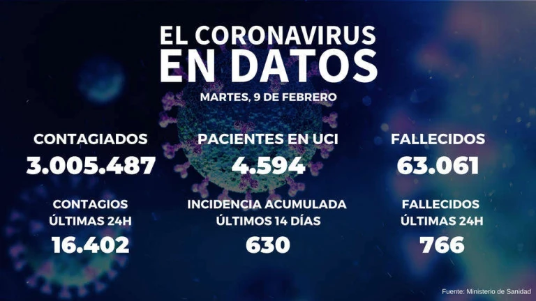 España supera los tres millones de contagios tras notificar 16.402 positivos y 766 fallecidos en un solo día