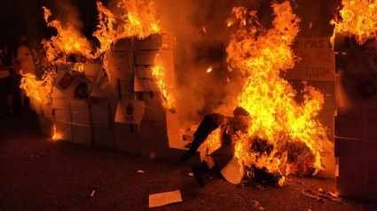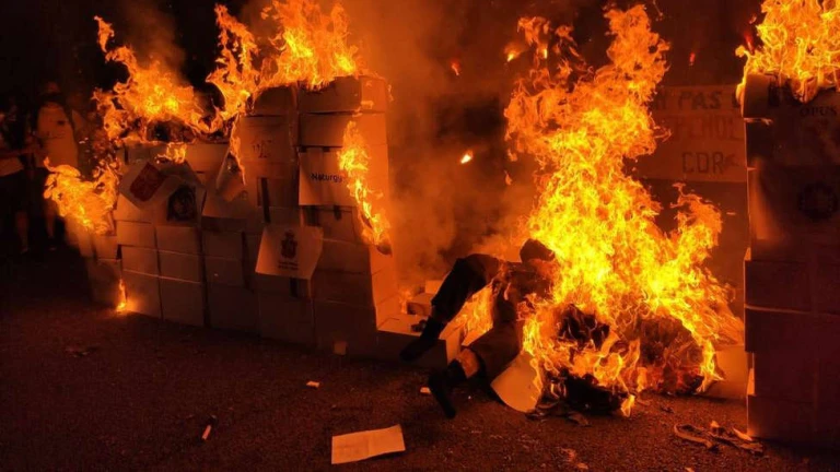 Los CDR inician una marcha no comunicada a Mossos y queman un muñeco del rey
