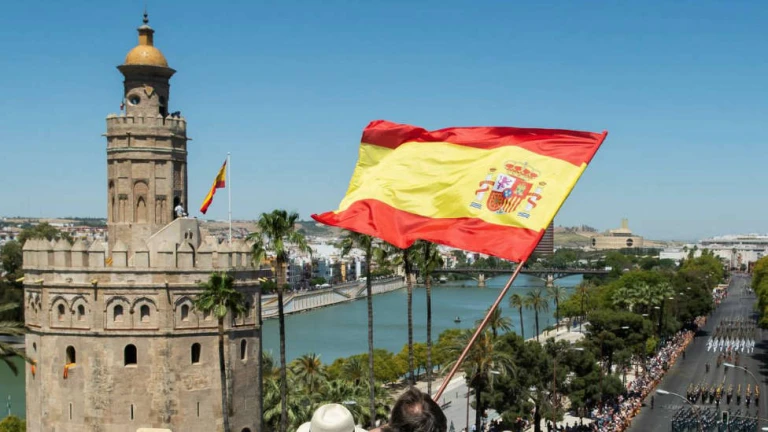 Los reyes Felipe y Letizia presiden este sábado en Sevilla las celebraciones del Día de las Fuerzas Armadas, que han reunido a decenas de miles de sevillanos y turistas junto al río Guadalquivir para presenciar el desfile militar.