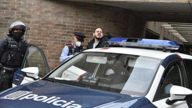 Decenas de agentes de los Mossos han entrado esta mañana en el rectorado de la Universidad de Lérida para detener a Hasel, condenado a nueve meses de prisión por delitos de enaltecimiento del terrorismo e injurias a la Corona.