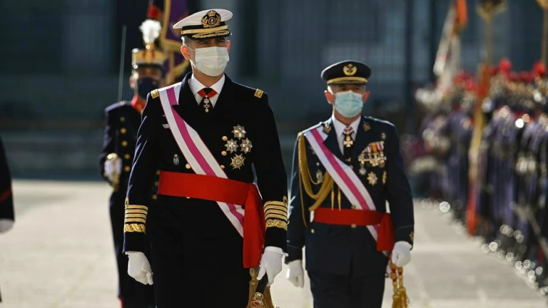 Felipe VI ha aprovechado la ocasión para felicitar a las Fuerzas Armadas y la Guardia Civil por su labor, realizada con "entrega, valor, lealtad, disciplina y humanidad", y ha ensalzado su labor durante la pandemia para combatir la expansión del coronavirus.