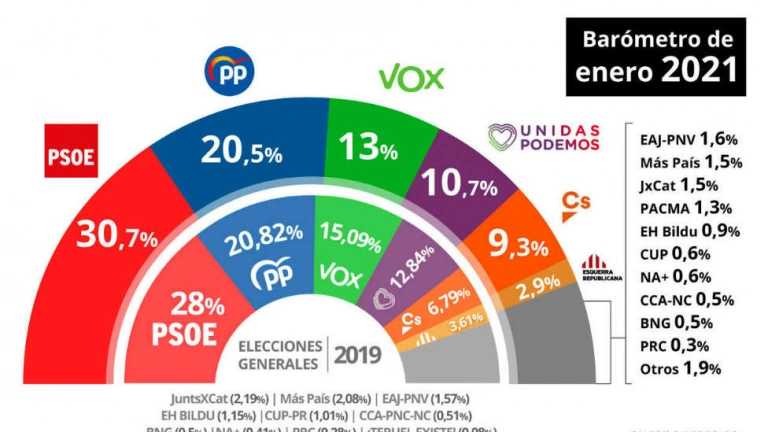 El PP también repunta 1,3 puntos y retroceden Vox y Unidas Podemos