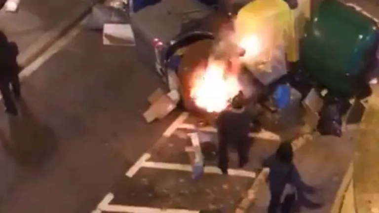 La tremenda paliza a un hombre que intenta apagar el incendio de unos contenedores en Barcelona