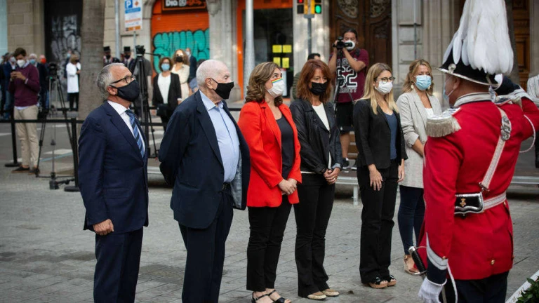 La Diada arranca siempre con la ofrenda floral de instituciones, partidos y entidades al monumento a Rafael Casanova de Barcelona, y este año no ha sido una excepción, aunque el formato, encorsetado por las medidas que impone la COVID-19, sí ha sido atípico.