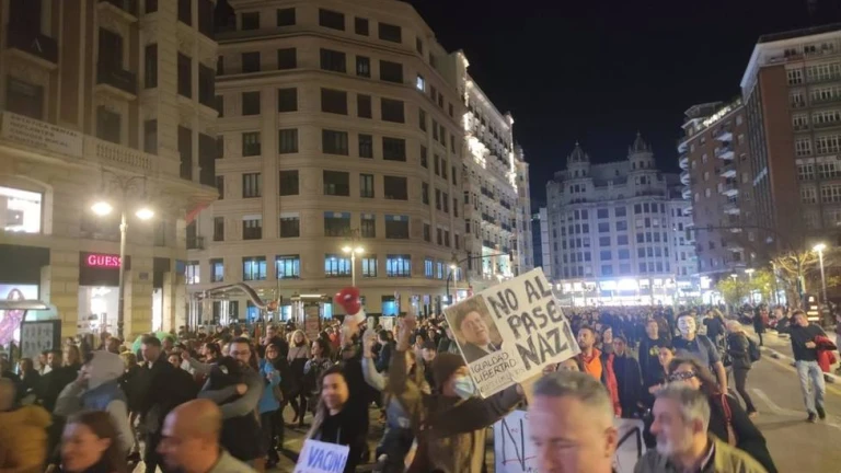 La protesta ha arrancado a las 18 horas de la plaza del Ayuntamiento y ha marchado por la calles Colón y Xàtiva, entre otras, convocada por las organizaciones Triple V, Unión Activa Valencia, Policías por la Libertad y Familias x la verdad. Fuentes de la Delegación del Gobierno han confirmado que la manifestación había sido comunicada.