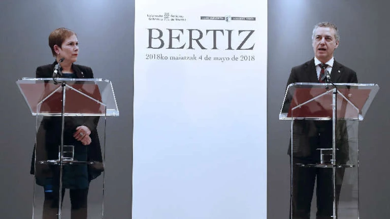 Uxue Barkos durante la declaración conjunta tras el fin de ETA