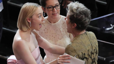 Las actrices Saoirse Ronan y su madre felicitan a Frances McDormand por su Oscar a la Mejor Actriz por "Three Billboards outside Ebbing, Missouri"