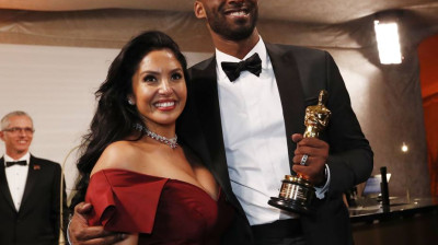Kobe Bryant con su Oscar junto a su mujer Vanessa Laine Bryant