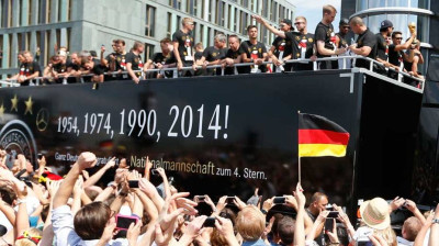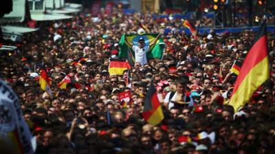 Banderas de Brasil ondearon entre la masa de alemanes.