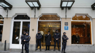 Agentes de la Policía Nacional a las puertas del hotel donde ha fallecido Rita Barberá. EFE