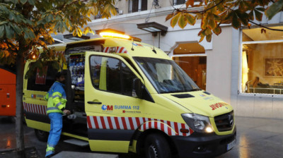 Ambulancia del SUMMA a las puertas del hotel de Madrid situado en las inmediaciones del Congreso. EFE