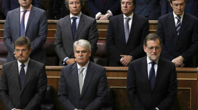 Bancada del PP durante el minuto de silencio en el Congreso. EFE