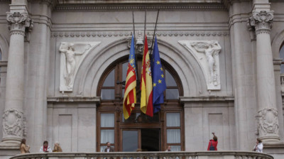 Banderas a media asta en el Ayuntamiento de Valencia. EFE
