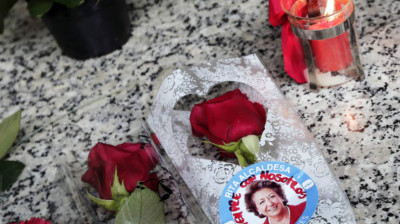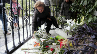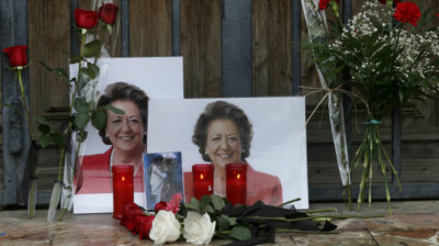Numerosas personas dejan flores y velas en el patio de la vivienda de la exalcaldesa Rita Barberá. EFE