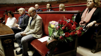 Ramo de rosas colocado en la bancada del grupo popular del Ayuntamiento de Valencia. EFE