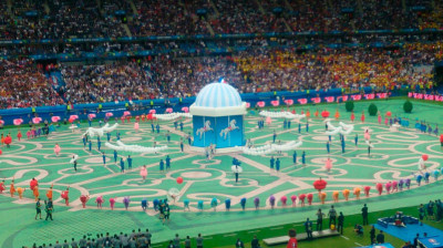 Una aficionada rumana durante la ceremonia inaugural (FOTO - Reuters)