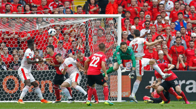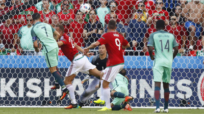 Momento del remate de Alderweireld para abrir el marcador ante Hungría (FOTO - Reuters)