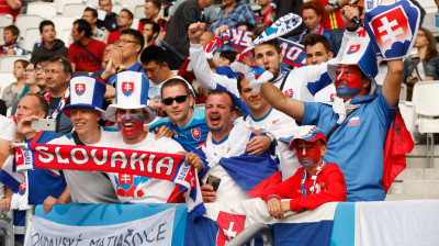 Los eslovacos acudieron disfrazados a ver a su selección. Reuters.