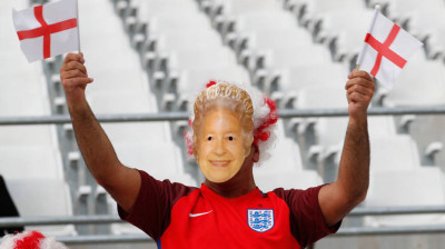 Un aficionado inglés con la careta de la Reina Madre (FOTO - Reuters)