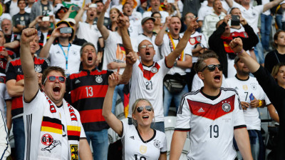 Miles de aficionados alemanes viendo a su selección en Berlín en una pantalla gigante. Reuters.