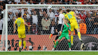 Mustafi adelantó a la selección alemana con un soberbio cabezazo. Reuters.
