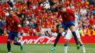 Momento del remate de Piqué que marcó el gol de la victoria frente a Rep.Checa (FOTO - Reuters)