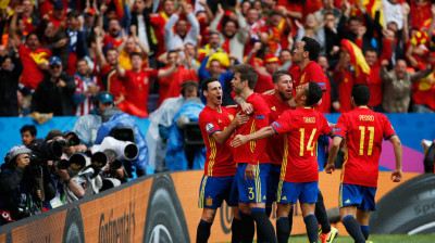 Los aficionados de España celebran el gol de Piqué frente a Rep.Checa (FOTO - Reuters)