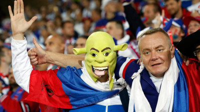 Los aficionados de Rusia se divierten en las gradas de Lille Metropole antes del partido. Reuters.
