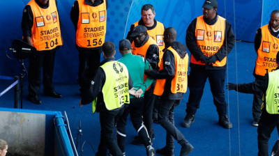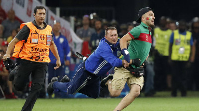 Un espontáneo interrumpe la segunda parte de la prórroga entre Polonia y Portugal. (FOTO - Reuters)