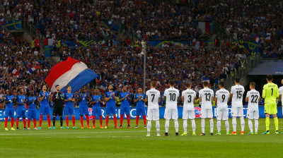 Emotivo minuto de silencio en el Francia-Albania por el policía muerto junto a su esposa. REUTERS