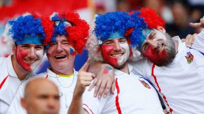 La afición eslovaca se divierte en las gradas de Burdeos. Reuters.