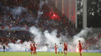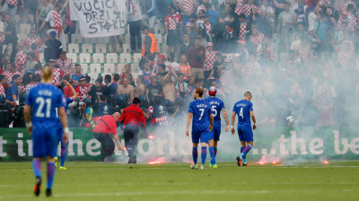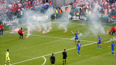 El lanzamiento de bengalas interrumpe el partido entre la República Checa y Croacia (FOTO - Reuters)