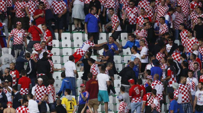 Pelea en las gradas entre los hinchas croatas. (FOTO - Reuters)