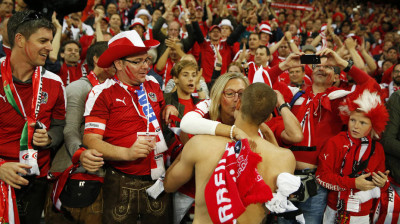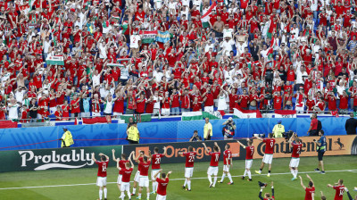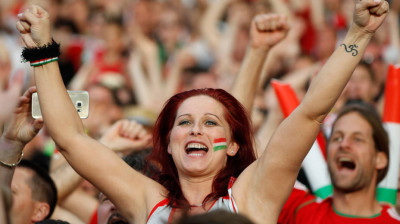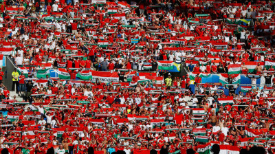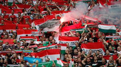Aficionados húngaros cantan antes del encuentro de octavos frente a Bélgica (FOTO - Reuters)