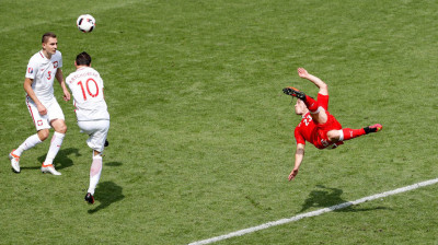 Xerdan Shaqiri empató el partido para Suiza con una chilena espectacular. Reuters.