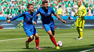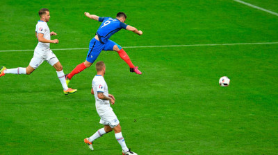 Giroud aprovechó un pase en largo de Matuidi para adelantar a Francia frente a Islandia con un zurdazo (UEFA)