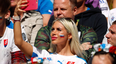 Una seguidora eslovaca se hace un selfie antes del partido ante Alemania. Reuters.