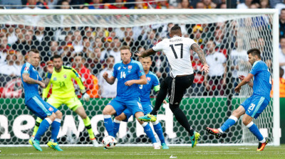 Disparo de Boateng que abrió el marcador ante Eslovaquia en los octavos de final (FOTO - Reuters)