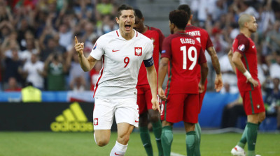 Lewandowski marca su primer gol en la Eurocopa ante Portugal. (FOTO - Reuters)