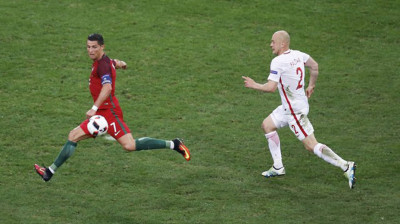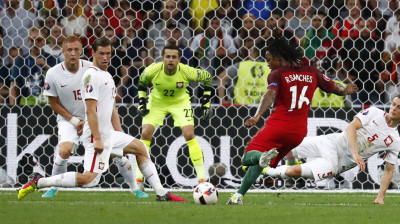 Renato Sanches sorprende a la defensa de Polonia para igualar la eliminatoria de cuartos. (FOTO - Reuters)