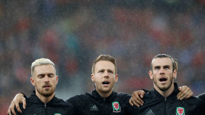 Ramsey, Gunter y Bale cantan el himno de Gales (FOTO - Reuters)