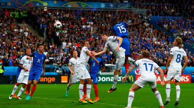 Gran cabezazo de Pogba tras un saque de esquina sacado por Griezmann para marcar el segundo frente a Islandia (UEFA)