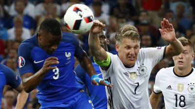 Schweinsteiger, con la mano, provoca el penalti que pone por delante a Francia (FOTO - Reuters)