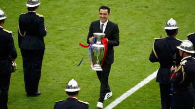 Xavi da el relevo la Eurocopa portando el trofeo (FOTO - Reuters)