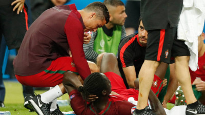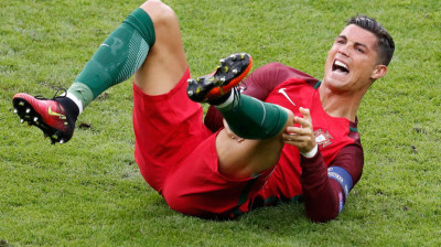Cristiano Ronaldo se duele de la entrada que le haría abandonar la final de la Eurocopa (FOTO - Reuters)