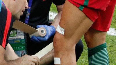 La rodilla de Cristiano Ronaldo vendada por los médicos portugueses (FOTO - REUTERS)