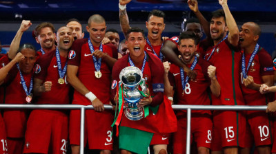 Jugadores de Portugal celebrando haber ganado la Eurocopa (FOTO - Reuters)