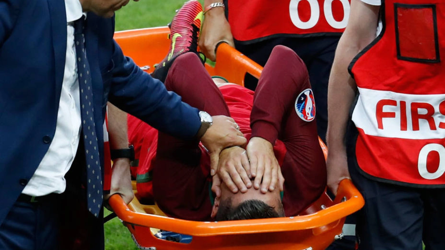 Cristiano Ronaldo, entre lágrimas, se retira en camilla de la final de la Eurocopa (FOTO - Reuters)