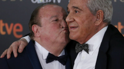 Los actores Fernando Esteso (i) y Andrés Pajares posan a su llegada a la ceremonia de los 30 edición de los Premios Goya. Reuters