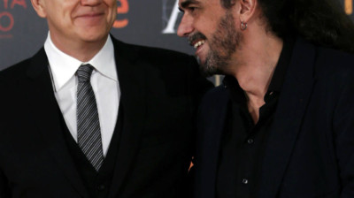 El director Fernando León de Aranoa (d) y el actor Tim Robbins (i), de la película Un día perfecto, a su llegada a la ceremonia. Reuters